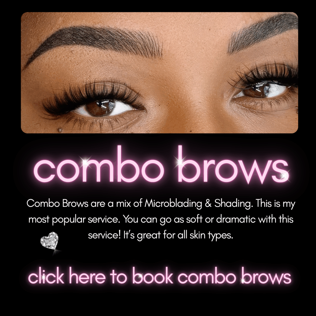Combo Brows: Combo Brows combine microblading and shading techniques. The front part of the brow is typically done with microblading for a natural look, while the tail end is shaded for added fullness and definition. This technique works well for those wanting a more dimensional look.